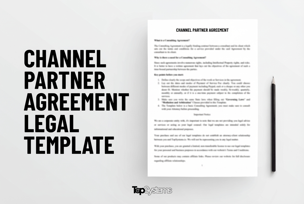 This professional Channel Partner Agreement template provides a comprehensive legal framework for Channel Partner arrangements. Designed for businesses and individuals, this template ensures compliance with applicable laws while protecting your interests.