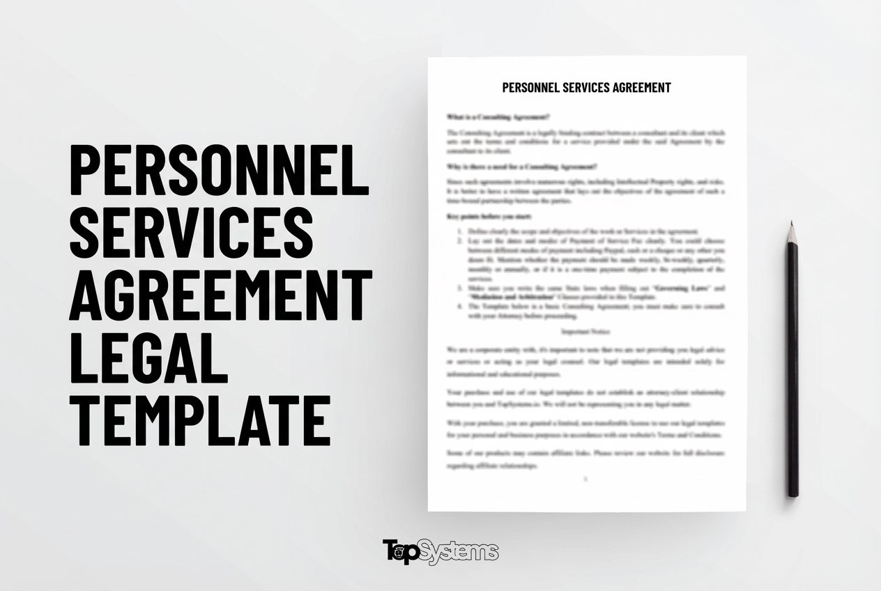 This professional Personnel Services Agreement template provides a comprehensive legal framework for Personnel Services arrangements. Designed for businesses and individuals, this template ensures compliance with applicable laws while protecting your interests.